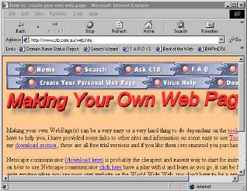 Making your own WebPage(s) can be a very easy or a very hard thing to do dependant on the tools you have to help you, I have provided some links to other sites and information on some easy to use Tools in my download section , these are all free trial versions and if you like them I recommend you purchase them. Netscape communicator (download here) is probably the cheapest and easiest way to start, for instructions on how to use Netscape communicator click here have a play with it and learn as you go, it can be fun and quite exciting when you see your own website on the World Wide Web, you don't have to be a genius to do it, just be patient it will all come together, if yo have any problems you call always call for my help Ill be glad to assist, I was a beginner once, I know what its like. A few things to keep in mind when designing a web page are.